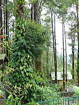 幹線道路沿いにあり、防犯の為か門に鉄の柵があります。ここも宿泊者の名前を告げて開けてもらうようです。 チェックインをするとリストバンドを付けてもらい、フロントから森の中の屋根付きの回廊を通って行きます。 ロッジは木造の建物で高床式です。部屋は4ベッドの49号室。広々しています。やはりエアコンは無く天井にファンがあります。廊下にはロッキングチェアーやハンモックがあります。 夕食はバイキング。オニオンスープを始め、ビーフインサルサ、鶏肉入りサラダ、ポテト、にんじん、ジュース(ミックス、スターフルーツ)、コーヒー等で、どれも美味しかったです。 夕食の途中から雨が降り始め、ものすごいスコールになりました。会話も聞こえにくいくらいで、朝方までずっと降っていました。高床式の理由がよく分かりました。 敷地内のジャングルの遊歩道はよく整備されていて、ホテルのガイドによる無料のバードウォッチングツアーがあります。自分達でも散策できますが、ツアーの方が鳥の発見率が断然高いようです。 今回は雨のせいか、あまり鳥がいませんでしたが、それでもおなかの黄色いキバラタイランチョウやオレンジ色の鳥を何羽か見ることができました。 朝食バイキングはハムと目玉焼き、ガチョピントも美味しかったです。ジュースは夕べと違うものでSorsopというものとオレンジでした。シスコーン、コーヒー、紅茶などもあります。 夕食は緑色のスープ(栄養がありそう)、チキンライス、肉、タマネギ、ユカイモ、ブラックベリージュース、ムースでした。ここの食事は概して美味しかったです。 |