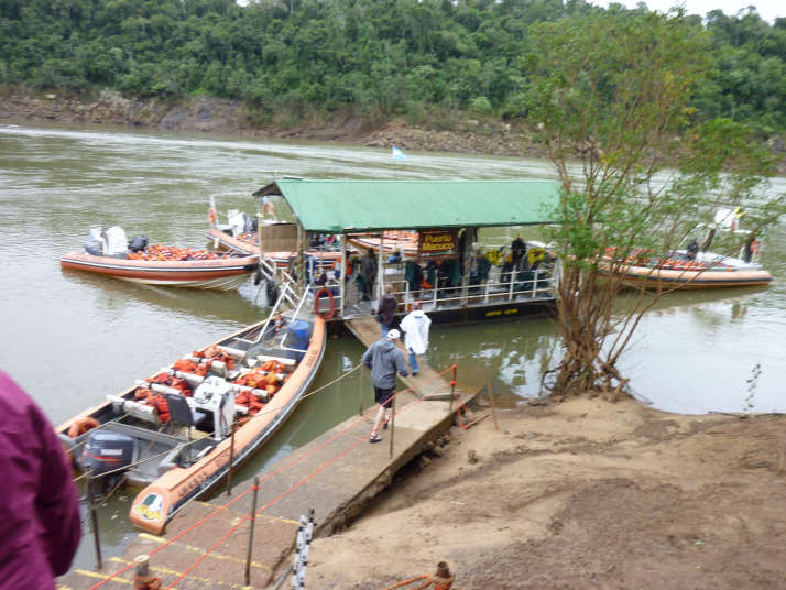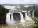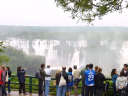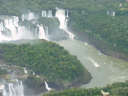 ここはずぶ濡れになるのでカッパが必要です。サンダル履きで、Gパンは膝までまくりましたが、吹き上げてくるシブキで結構濡れました。カメラは防水のオプティオです。カメラを手渡ししようとして落としてヒヤリ!遊歩道から落ちなくて良かった。もう少しずれていたら濁流に飲み込まれてしまうところでした。遊歩道の先端まで行くと本来悪魔の喉笛が見えるはずですが、シブキが凄くてほとんど分かりませんでした。ここ数日の雨で増水していて凄い水量です。今日のイグアスの滝は1秒間に1700㎥の水が流れ落ちているそうです。