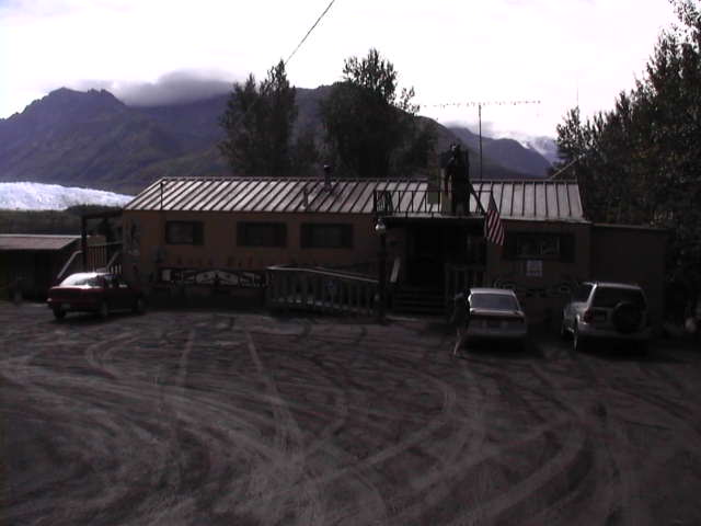 パーマーから60マイルほど行くと右手にマタヌスカ氷河が見えてきました。展望台があったので寄ってみました。(お手洗い有)それまで雨が降ったり止んだりしていたのですが、ちょうど晴れてよく見えました。