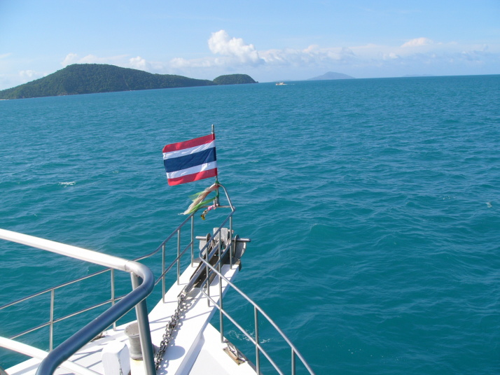 ダイビングスポットのラチャヤイ島までは1時間20分ほどかかり、始めはあまり波は高くなかったのですが、だんだん高くなって船も揺れるようになってきました。大きなクルーザーなのでいろんなツアーの人が乗り合わせていましたが、日本人は他に2名だけでした。島に着いてレクチャーの後、50分もぐり、上がってお昼ごはんを食べて、また50分もぐるとの事です。耳抜きの仕方や、マスクに水が入った時の対処など聞きましたが、やってみると結構簡単です。カナヅチでも大丈夫です。